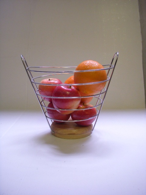 Krómacél és fa gyümölcskosár