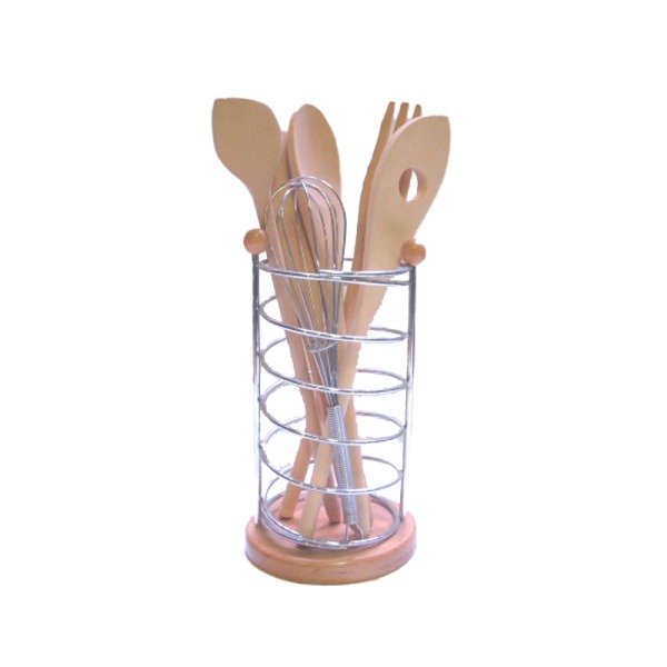 Fa- króm eszköztartó, 1 habverővel, 1 favillával, 2 fakanállal